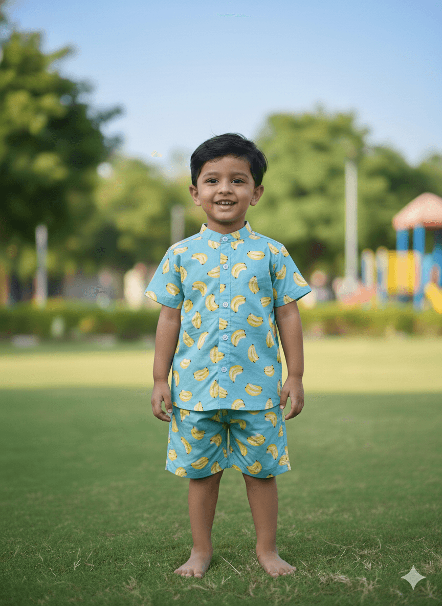 Midnight Banana Kids Cotton Shirt & Shorts Set – Black & Yellow